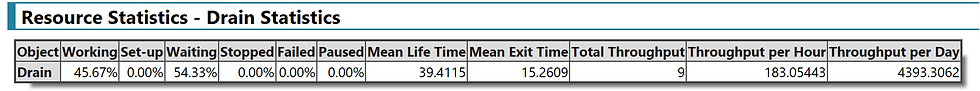 Figure: Drain statistics showing a 27% increase in throughput per hour